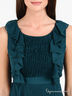 Детали: круглый вырез, без рукавов, изделие украшено рюшами, спереди плиссированная вставка, талия на поясе, сбоку застегивается на молнию