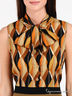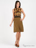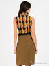 Детали: отложной воротник с широкими лентами, без рукавов, сбоку застегивается на молнию, талия на втачном поясе и завязках, спереди застегивается на пуговицы, 2 декоративных кармана