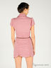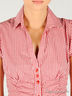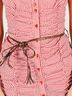 Приталенное хлопковое платье. Отложной воротник на стойке. Глубокий вырез. Застегивается спереди на пуговицы. Короткие рукава-фонарики, край рукава посажен на резинку. Присборенная юбка. В комплект входит тонкий ремешок.