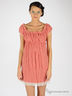 Отрезное шифоновое платье. Короткие рукава-фонарики с кружевными оборками. Край рукавов, линяя отреза лифа и горловина посажены на резинку. Шелковистая подкладка.
