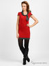 Стильное платье из тонкого джерси. Модель прямого силуэта. Округлый вырез горловины дополнен оригинальной драпировкой с бантиком. Короткие рукава. На юбке пришита круглая накладка с латинской буквой "R" и стразой. Драпировка на Вороте, вставки на рукавах и на подоле выполнены из контрастной ткани. Прекрасный вариант на каждый день!