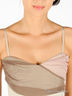 Приталенное эластичное платье. Тонкие регулируемые бретельки. Верх спинки посажен на резинку. Застегивается сбоку на молнию. Драпировано эластичной ажурной тканью.
