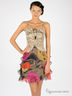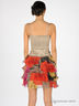 Отрезное приталенное платье. Архитектурный атласный лиф с вертикальными выточками. Тонкие регулируемые бретельки. Прямая трикотажная юбка с шифоновыми оборками. Застегивается на молнию сзади.