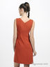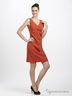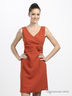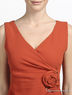 Нарядное платье прямого кроя из тонкой неэластичной ткани с тонкой шелковистой подкладкой. Застегивается на молнию на спине. V-образный вырез горловины с запахом. На полочке выполнены декоративные складки с розой из шелковистой ткани.