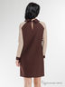 Свободное, стильное двухцветное платье с длинным рукавом с манжетом, с небольшим воротником, не оставит равнодушной ни одну модницу. Множество вариантов на любую фантазию. Смотрится совершенно по разному если украсить съемным воротником или колье, тонким или толстым поясом на талии или по бедрам, или просто шейным платком. В зависимости от аксессуаров вы будете самой модной и в офисе и на вечеринке. Незаменимое платье для выхода в свет прямо после работы.