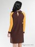 Свободное, стильное двухцветное платье с длинным рукавом с манжетом, с небольшим воротником, не оставит равнодушной ни одну модницу. Множество вариантов на любую фантазию. Смотрится совершенно по разному если украсить съемным воротником или колье, тонким или толстым поясом на талии или по бедрам, или просто шейным платком.
