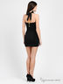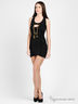 Оригинальное вечернее платье приталенного силуэта. Выполнено из приятной на ощупь эластичной ткани. Воротник-стойка с разрезом в форме капли. Без рукавов. Сзади завязка на ленты через шею. По бокам вставка на резиночки. Модель украшена серебристыми и золотистыми цепями с декоративными элементами. Будьте в центре внимания!
