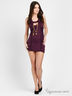 Оригинальное вечернее платье приталенного силуэта. Выполнено из приятной на ощупь эластичной ткани. Воротник-стойка с разрезом в форме капли. Без рукавов. Сзади завязка на ленты через шею. По бокам вставка на резиночки. Модель украшена серебристыми и золотистыми цепями с декоративными элементами. Будьте в центре внимания!