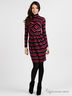 Стильное платье прямого силуэта выполнено из эластичного трикотажа с добавлением люрекса. Ворот гольф, длинный рукав. Передняя часть изделия декорирована драпировками. Отличный вариант для создания повседневного образа.