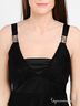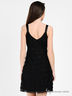 Нарядное платье приталенного силуэта выполнено из эластичной сетчатой ткани с тонкой шелковистой подкладкой. Бретели дополнены металлическими декоративными элементами, втачной пояс на резинке сзади, вставки атласной ткани, декорировано многоярусными воланами. Стильный коктейльный вариант.
