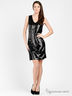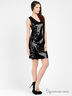 Блестящее платье приталенного кроя. Спинка выполнена из полушерстяного трикотажа средней плотности, передняя часть из сетчатой ткани, обильно расшитой пайетками. Универсальное нарядное платье.
