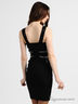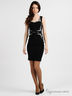 Эффектное платье облегающего силуэта выполнено из плотного материала с эластичным подкладом. Фигурный вырез горловины, лямки. Скрытая застежка на молнию на спинке. Отрезной пояс дополнен имитацией лакового ремешка. Контрастные вставки. Для настоящей леди.