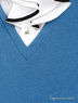 Стильное платье приталенного силуэта из шерстяного трикотажа средней эластичности. Отложной ворот, вставка на полочке и манжеты длинного рукава из хлопчатобумажной ткани контрастного цвета. Застегивается на пуговицы спереди, на полочке оригинальное жабо. Отличный вариант для офиса или прогулок.