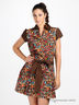 Оригинальное хлопковое платье. Отложной воротник на стойке. V-образный вырез. Планка-застежна на кнопках. Воротник рукава. Заниженная талия подчеркнута поясом. Юбка в складку. Жизнерадостный и игривый принт всегда выделит Вас из толпы и поднимет настроение.