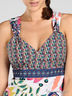Легкое летнее слегка расклешенное платье с ярким жизнерадостным принтом. Широкие бретельки. V-образный вырез. Втачной пояс под грудью завязывается на спине. Застегивается на молнию сбоку. Двухслойный полол. Модель для женщин, которые ценят свою неповторимость.