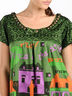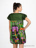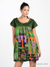 Легкое платье трапеция с ярким оригинальным принтом - напоминает о модных сегодня 60-х, бурных и смелых. Круглая горловина декорирована бронзовыми бусинами и игривым бантом. Короткие рукава баллоны. Отрезная кокетка. Юбка баллон с шелковистой подкладкой.