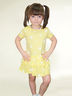 Платье детское. Длина изделия выше колена, вырез горловины округлый, неглубокий. Цвет-светло жёлтый с принтом.