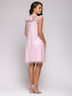 Платье розовое длины мини без рукавов с мягким фатином и поясом