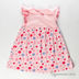 Платье для девочки розовое. Выполнено из мягкого трикотажа. Отрезной лиф и спинка. Завышенная линия талии. Проймы рукавов отделаны трикотажными рюшами. Планка-застежка с пуговицами на спинке изделия.