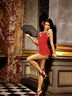 Очаровательное платье прямого кроя красного цвета с изящными бантиками, создающими романтическое настроение. Слегка просвечивающие и открытые сзади трусики из тонкой сеточки будоражат фантазию.