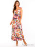 Изумительное длинное платье - очень красивый, просто незаменимый вариант на солнечное лето. Изделие идеально сядет по фигуре, подчеркивая ее изящные очертания. Платье украшено красочным рисунком. Вырез горловины фигурный, легкая фактура материала.