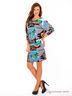 Очаровательное платье соблазнительной длины мини. Модель с рукавами 3/4 и аккуратным вырезом горловины. Изделие оформлено контрастным рисунком. Прекрасный вариант для создания романтичного образа.