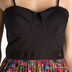 Верх модели выполнен из вискозы, крой по фигуре с вшитыми чашками. По верху лифа вшит декоративный отворот. Юбка на подкладке из трикотажа с мелким цветочным рисунком. На спинке застежка молния.