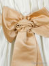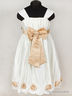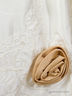 Великолепное белое платье для торжественных случаев. Вырез горловины - каре, широкие нерегулируемые бретели, завышенная талия подчеркнута поясом-лентой из бежевой ткани с декоративной розочкой и бантом. Застежка на молнию. Низ платья украшен вышивкой, пайетками и декоративными розочками.