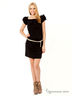 Прилегающие платье из стрейч-сатина с каре-образным вырезом на резинке, с интересным рукавом-фонариком сделанным в виде лепестков розы, в комплекте с кожаным золотым ремешком.