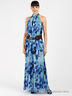 Детали: небольшой ворот-стойка с завязками на спинке, скрытая застежка на молнию на спинке, складки, принты, пояс в комплекте