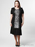 Повседневное платье слегка приталенного кроя. Выполнено из гладкого материала. Круглый вырез, короткие рукава, спереди декоративная вставка.