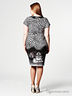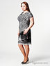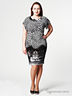 Платье из гладкого материала приталенного кроя. Круглый вырез, короткие рукава, украшено оригинальным принтом.