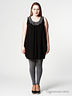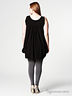 Платье из гладкого материала свободного кроя. Круглый вырез, без рукавов, полочка украшена декоративной нашивкой.