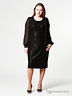 Слегка приталенное платье из гладкого материала. Круглый вырез, длинные полупрозрачные рукава. Спереди декоративная брошь.