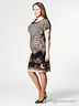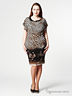 Платье из гладкого материала приталенного кроя. Круглый вырез, короткие рукава, украшено оригинальным принтом.
