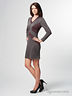 Повседневное платье приталенного кроя. Выполнено из гладкого материала. V-образный вырез, длинные рукава, спереди декоративная вставка.