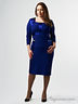 Вечернее платье слегка приталенного кроя. Выполнено из гладкого материала. Округлый вырез, рукава 7/8. Спереди украшено атласными лентами.