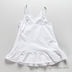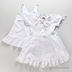 Расклешенная модель. Нижняя часть, выполняющая функцию подклада, может носиться отдельно. Верхнее платье декорировано тесьмой и вышивкой, застегивается на пуговицы.