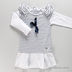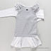 Расклешенная модель. К рукавам пришиты оборки-крылышки. Полочка присборена при помощи атласной ленты. Юбка во встречную складку.