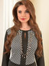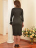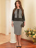 Платье из плотного трикотажа без подклада. Вырез горловины округлый. По полочке вставка из контрастной ткани, на вставке небольшой разрез. По линии талии имитация кокетки из контрастной ткани. Рукав вшивной 3/4 отделан контрастной тканью. Платье без молнии и застежки.