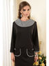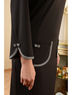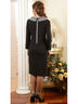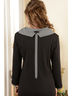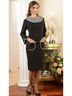 Платье из плотного трикотажа полуприлегающего силуэта без подклада. Вырез горловины округлый с отложным воротником из контрастной ткани. Рукав втачной длинный с отделкой по низу из контрастной ткани. По переду кармашки отделаны контрастной тканью. Платье без "молнии".