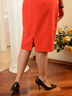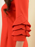 Платье из плотного текстильного полотна без подклада, полуприлегающего силуэта. Вырез горловины круглый. Рукав втачной, по низу рукава три волана. По спинке молния и небольшой разрез.