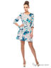 Платье приталенного силуэта отрезное чуть ниже талии. Выполнено из плотного фактурного хлопка со стрейчем с ярким бирюзовым принтом.