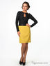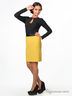 Замечательное комбинированное платье с длинными рукавами и округлой горловиной. Модель приталенного покроя на талии оформлена широкой лентой. Верх изделия украшен вырезом в форме капли.