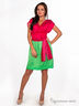 Оригинальное по дизайну платье из приятного к телу материала. Модель с короткими рукавами и округлым вырезом горловины. Линию талии подчеркивает поясок. Отличный вариант для особенных случаев.