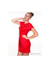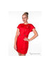 Модное платье приталенного силуэта. Выполнено из гладкой, приятной на ощупь ткани. Округлый вырез горловины. Короткие рукава. Сзади застежка на скрытую молнию. Спереди украшено золотистыми пуговицами и воланом. Яркий вариант для офиса и прогулок!