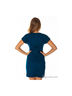 Модное платье приталенного силуэта. Выполнено из гладкой, приятной на ощупь ткани. Округлый вырез горловины. Короткие рукава. Сзади застежка на скрытую молнию. Спереди украшено золотистыми пуговицами и воланом. Яркий вариант для офиса и прогулок!