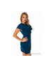 Модное платье приталенного силуэта. Выполнено из гладкой, приятной на ощупь ткани. Округлый вырез горловины. Короткие рукава. Сзади застежка на скрытую молнию. Спереди украшено золотистыми пуговицами и воланом. Яркий вариант для офиса и прогулок!