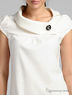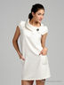 Детали: отложной воротник с декоративной пуговицей, рукава-фонарики собраны на резинку. Полочка декорирована мелкими складками, два накладных кармана