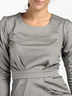 Детали: застежка на скрытую молнию, округлый вырез горловины, длинный рукав с декоративными складками в проймах, полочка и низ изделия дополнены складками, втачной пояс